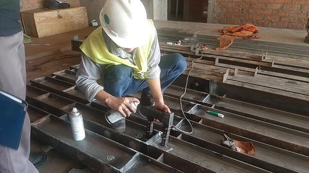 The Central Project, Yangon, Magnetic Particle Testing of Shop No-21 Stair-Case, Fillet & Butt Weld Seams of U Beams (27.6.24)