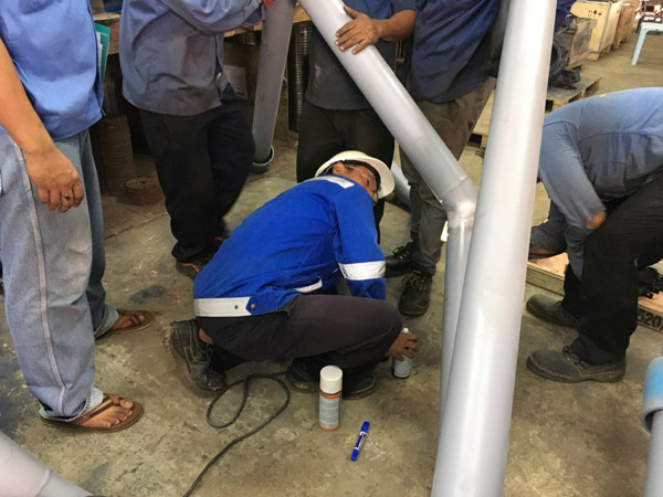 Operation Performed : MAGNETIC PARTICLE TEST ON WELD JOINTS OF DMA 5-4 MILD STEEL, Ø 4” PIPES SHWE PYI THAR INDUSTRIAL ZONE (1), YANGON Client : HAN SEIN THANT ENGINEERING COMPANY LIMITED