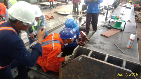 Operation Performed : MAGNETIC PARTICLE TEST ON WELD JOINT OF TEMPORARY METALLIC BRIDGE H-BEAM TO H-BEAM